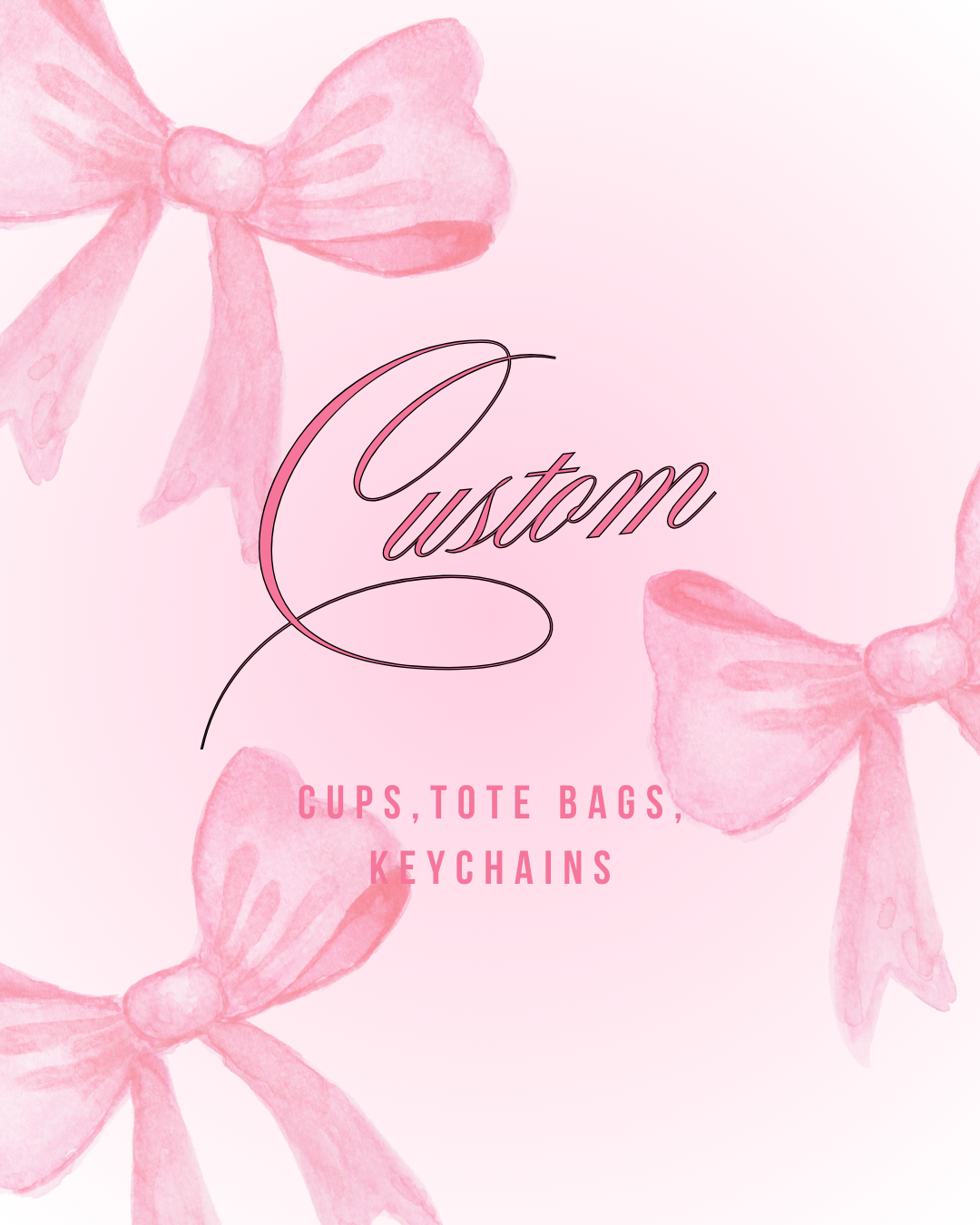 Keychains: $ 8Coffee Cups: $10Glass Cups: $20Stanley Cup: $45 - $50Yetti Cup: $45 - $50HydroJug: $40 - $50Tote Bag: $15